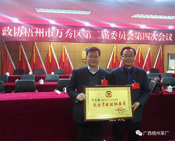 梧州茶廠何志強(qiáng)同志再獲“突出貢獻(xiàn)政協(xié)委員”