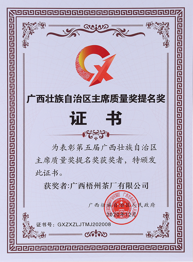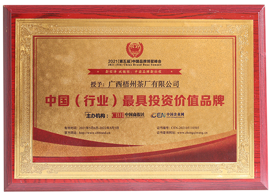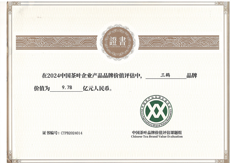 先進(jìn)的工藝、獨特的環(huán)境、堅守的匠心,終獲市場肯定,茶友追捧。梧茶公司先后榮獲“中國茶葉學(xué)會茶葉科技示范基地”“國家知識產(chǎn)權(quán)優(yōu)勢企業(yè)”“高新技術(shù)企業(yè)”“全國實施卓越績效模式先進(jìn)企業(yè)”“廣西農(nóng)業(yè)產(chǎn)業(yè)化重點企業(yè)”“廣西文化產(chǎn)業(yè)示范基地”等,三鶴六堡茶是“國家生態(tài)原產(chǎn)地保護產(chǎn)品"“國家地理標(biāo)志保護產(chǎn)品”“中國黑茶(六堡茶)標(biāo)志性品牌”,榮獲“第三屆梧州市市長質(zhì)量獎”“第五屆廣西壯族自治區(qū)主席質(zhì)量獎提名獎”等榮譽。
